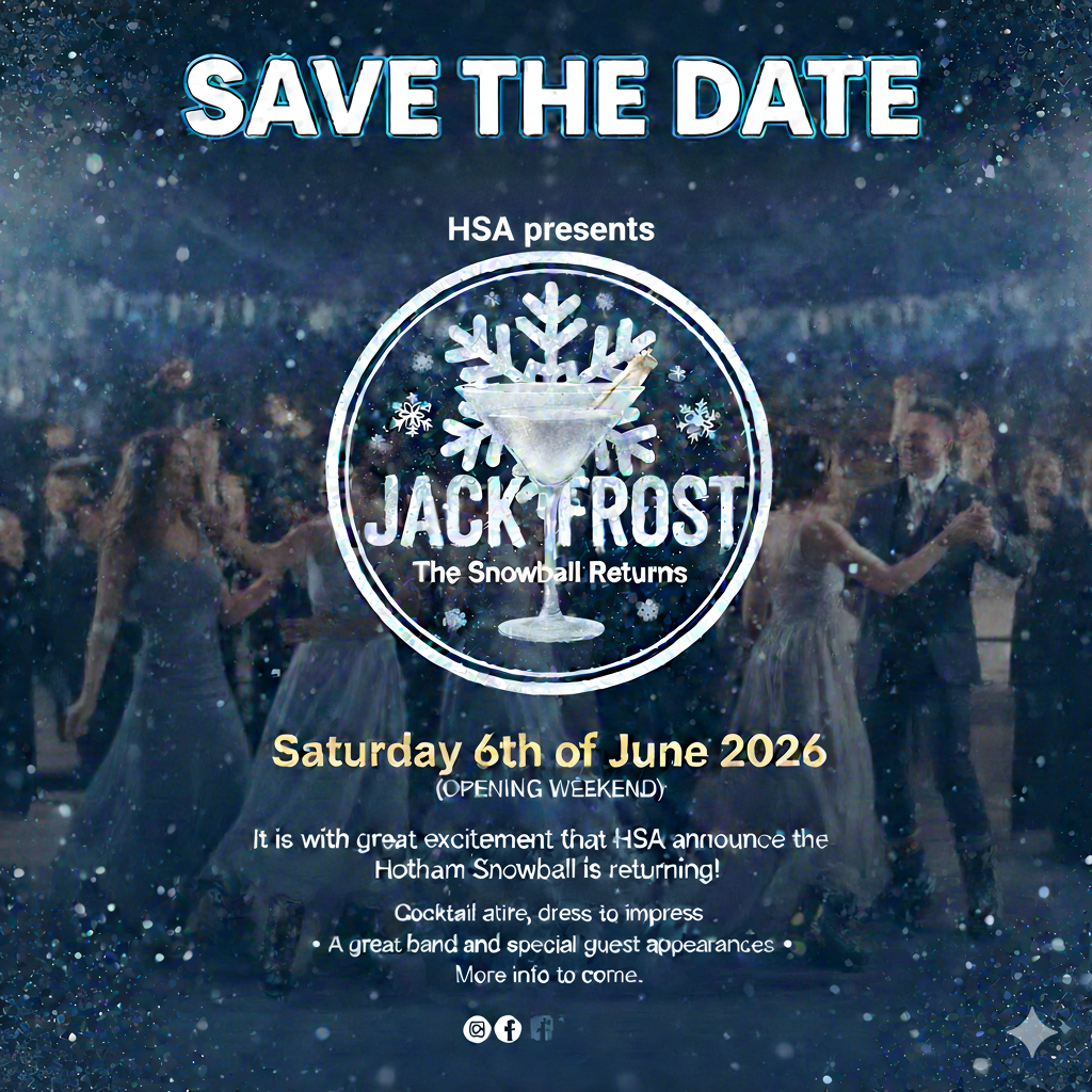 Save the date for the Hotham Snowball to be held at Jack Frost on Saturday 6th of June 2026.